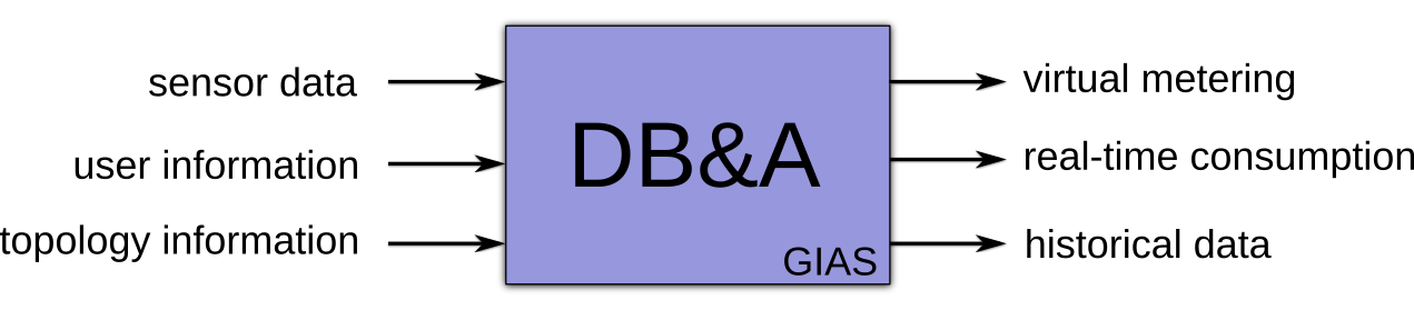 The DB&A collects sensor data, user information and topology information on house level of the different customers sharing the various end-points of the EDN and enables their aggregation. Furthermore, the DB&A service is also in charge of collecting other measures useful to monitor the status of the EDN.