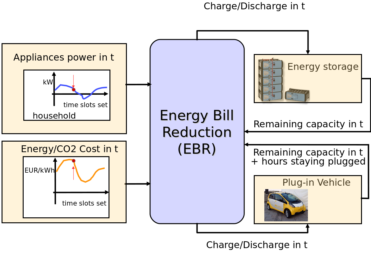 The goal of the EBR service is to reduce the electrical energy costs of a given residential user, without modifying the user habits. To this aim, EBR runs as an automatic controller, at the user premises, for selected home appliances, namely a battery and a Plug-in Electrical Vehicle (PEV). The control actions decided by EBR consist in charge and/or discharge commands for both the battery and the PEV. EBR comes in multiple versions, which are able to: