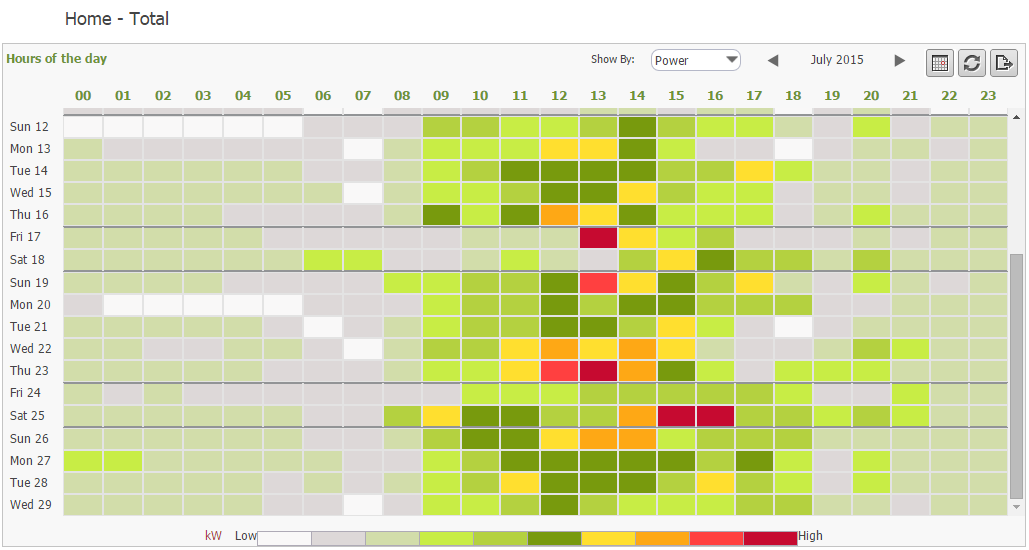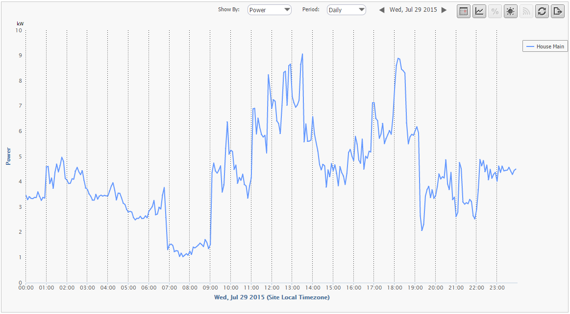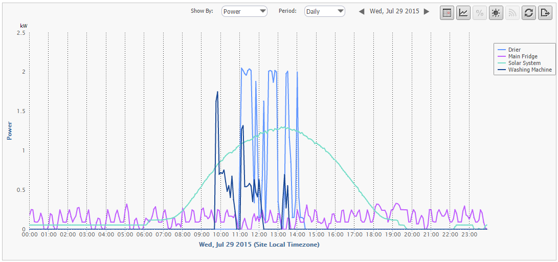 The sensors deployed in the residential homes of the SmartHG test-beds allow the project to collect information on the electrical consumption of the home. As can be seen in the screenshots below, the data collected can be displayed in numerous ways on the Dashboard, enabling the various users (the project partners, the homeowners, etc) to receive the information they need. This includes seeing only the entire home’s consumption (mains), or just a specific appliance or category. It includes the time frame shown, be it hourly, daily, monthly, etc.