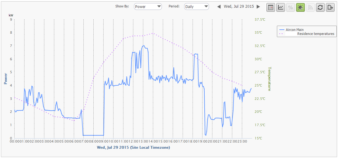 AC Consumption vs. Outside Temperature – Daily View